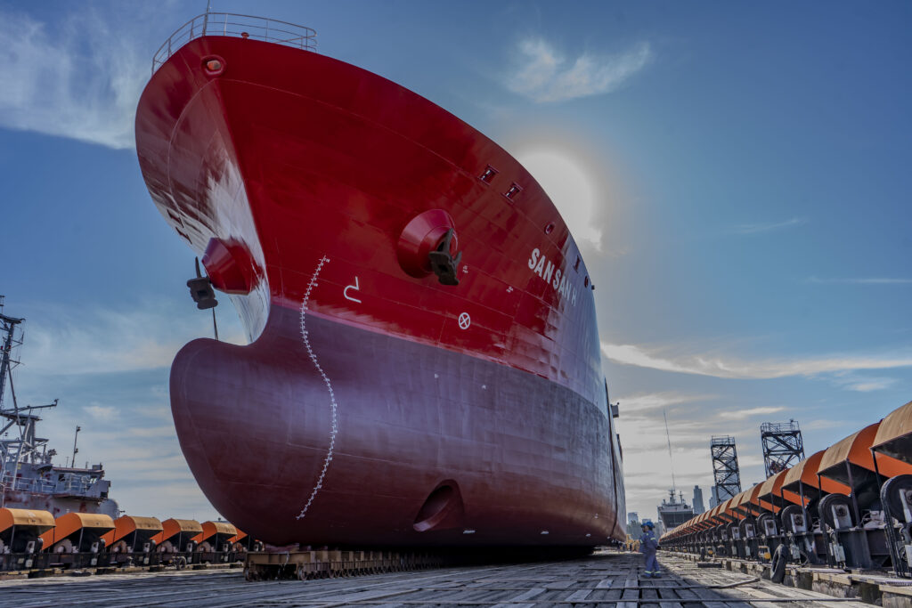 El buque tanque San San H, de bandera liberiana, con una eslora de 144 metros y una manga de 23 metros, concluyó sus trabajos de reparación y mantenimiento en la grada 4 del astillero. Finalizadas las intervenciones, la unidad fue trasladada al Syncrolift, donde se realizó su botadura. Actualmente, permanece amarrado en el Muelle E a la espera de su salida.