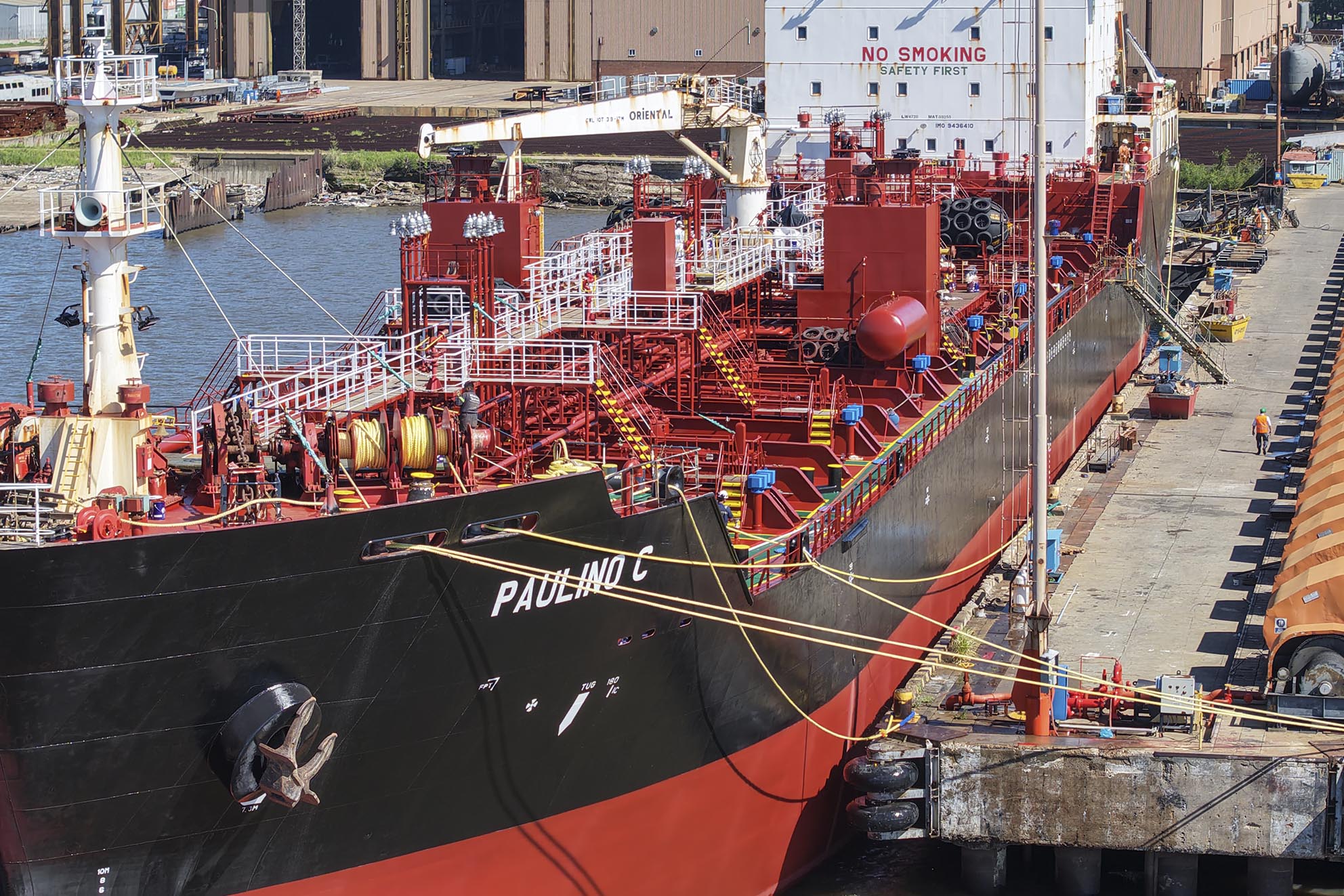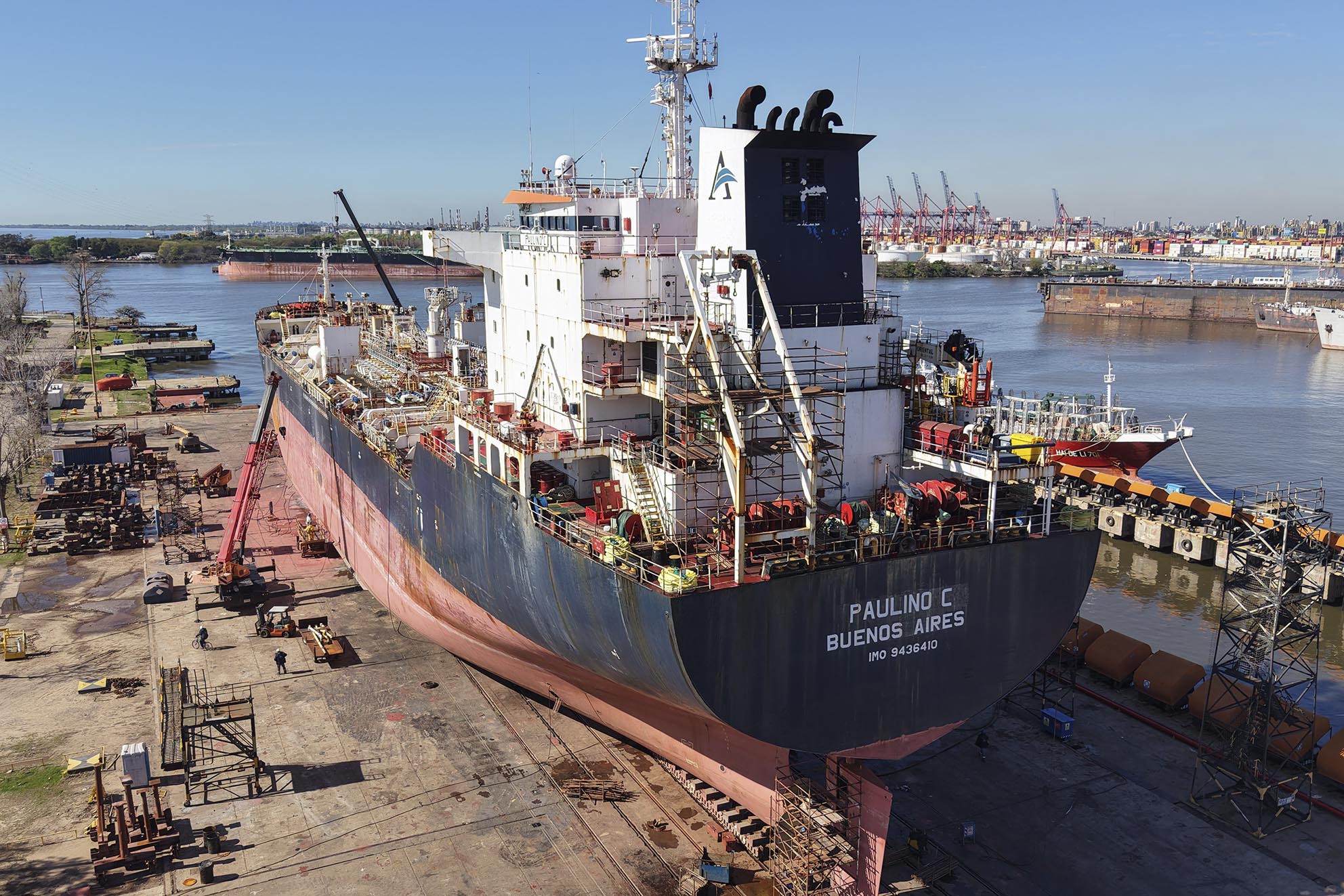 El petrolero Paulino C, de 144 metros de eslora y 22,63 metros de manga, finalizó en el astillero un conjunto integral de tareas de reparación y mantenimiento que involucraron a las áreas de Mecánica, Calderería, Carenado, Cobrería, Electricidad, Habitabilidad y Control de Calidad del astillero.